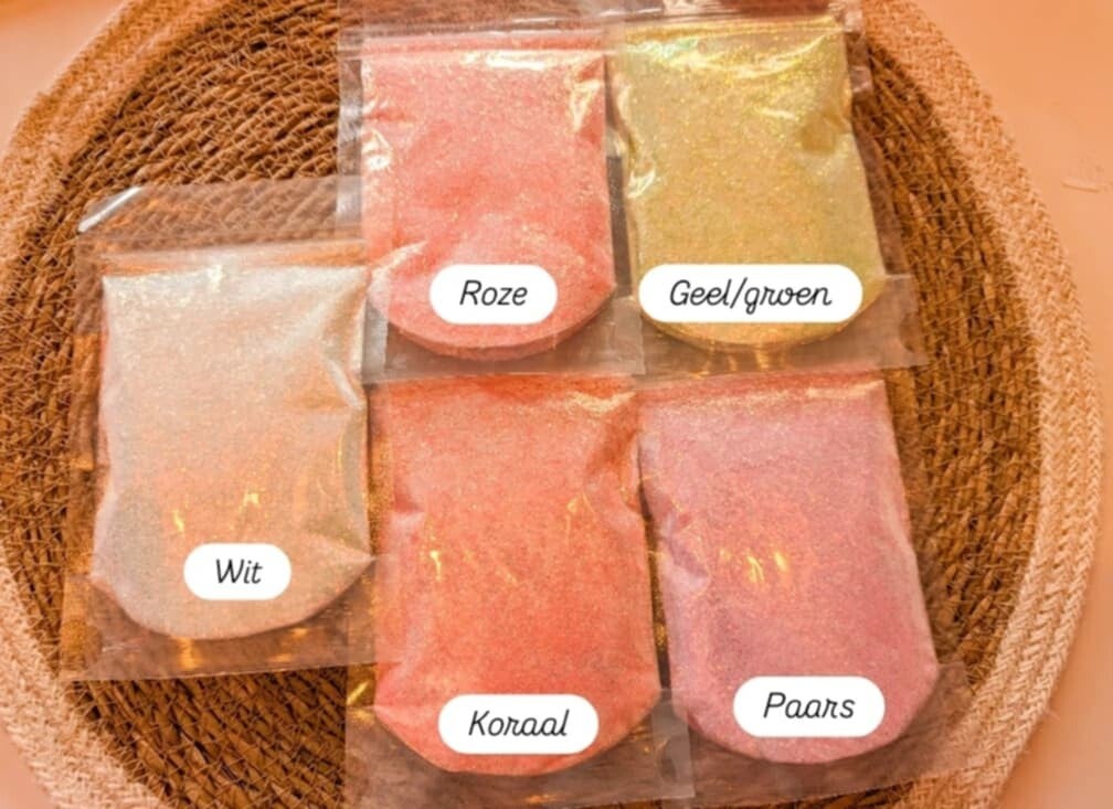 Drinkbeker die gepersonaliseerd kan worden met verschillende kleuren glitter.